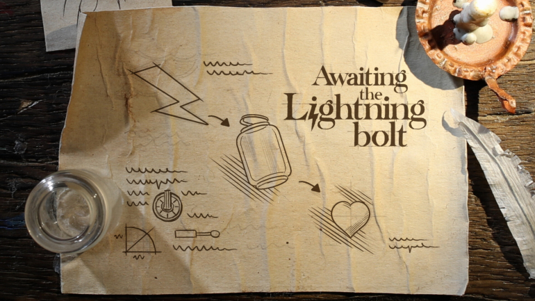 In Awaiting the Lightning Bolt, Renato, un eccentrico inventore rinascimentale, osa l'impossibile: catturare un fulmine in un barattolo!