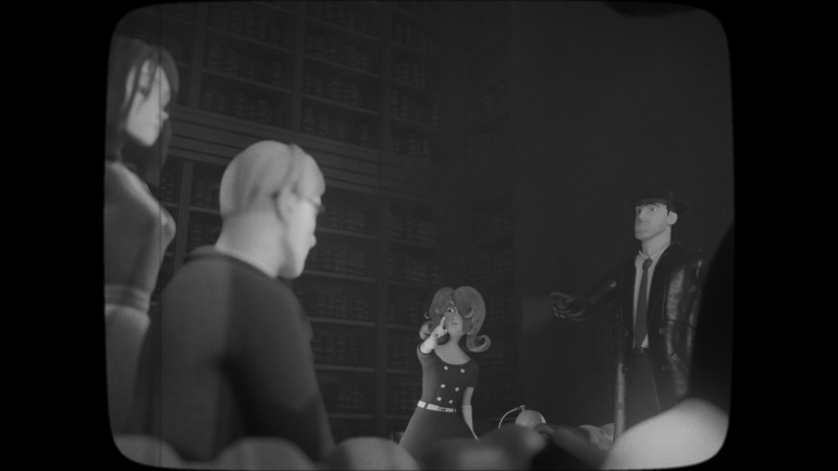 1950. In a new chapter of the fashionable radio serial, Inspector Pratt is about to reveal the murderer of Mrs. Brown, the rich heiress of the Balme jewelry emporium. The suspects are waiting in the huge Victorian drawing room, expectant for the resolution of the cleverest of detectives. But nothing is what it seems at Humbug Manor.