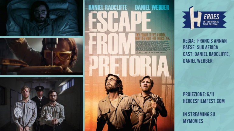 1978. Tim Jenkin (Daniel Radcliffe, Harry Potter) e’ un cittadino sudafricano accusato di terrorismo e imprigionato perché coinvolto in operazioni di propaganda anti-apartheid. Insieme a un altro attivista, Stephen Lee (Daniel Webber, The Punisher), l’uomo progetta un’evasione dal carcere di massima sicurezza. Basato sulla storia vera, già raccontata da Tim Jenkin nel suo libro biografico “Inside Out: Escape from Pretoria Prison”, il film è un prison movie che mescola le carte del biopic e del thriller action. Per costruire nel dettaglio il piano di evasione, il regista e sceneggiatore Francis Annan si è avvalso dell’aiuto di alcuni veri prigionieri politici di Pretoria.