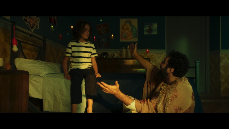 Carlo is nine-years-old, lives in Taranto, and is seriously ill. Carlo is very passionate about Jesus, his favorite superhero. He suffers from catatonic crisis, suddenly being completely absent. Ugo is in his forties, put aside from work with insurance from the giant steel mill where he works. Atheist and communist, but needy. He decides to take part in a mysterious casting, with a considerable reward, for the role of Jesus. That’s how Ugo, to make Carlo happy, plays the part of the biggest superhero of all times: Super Jesus.